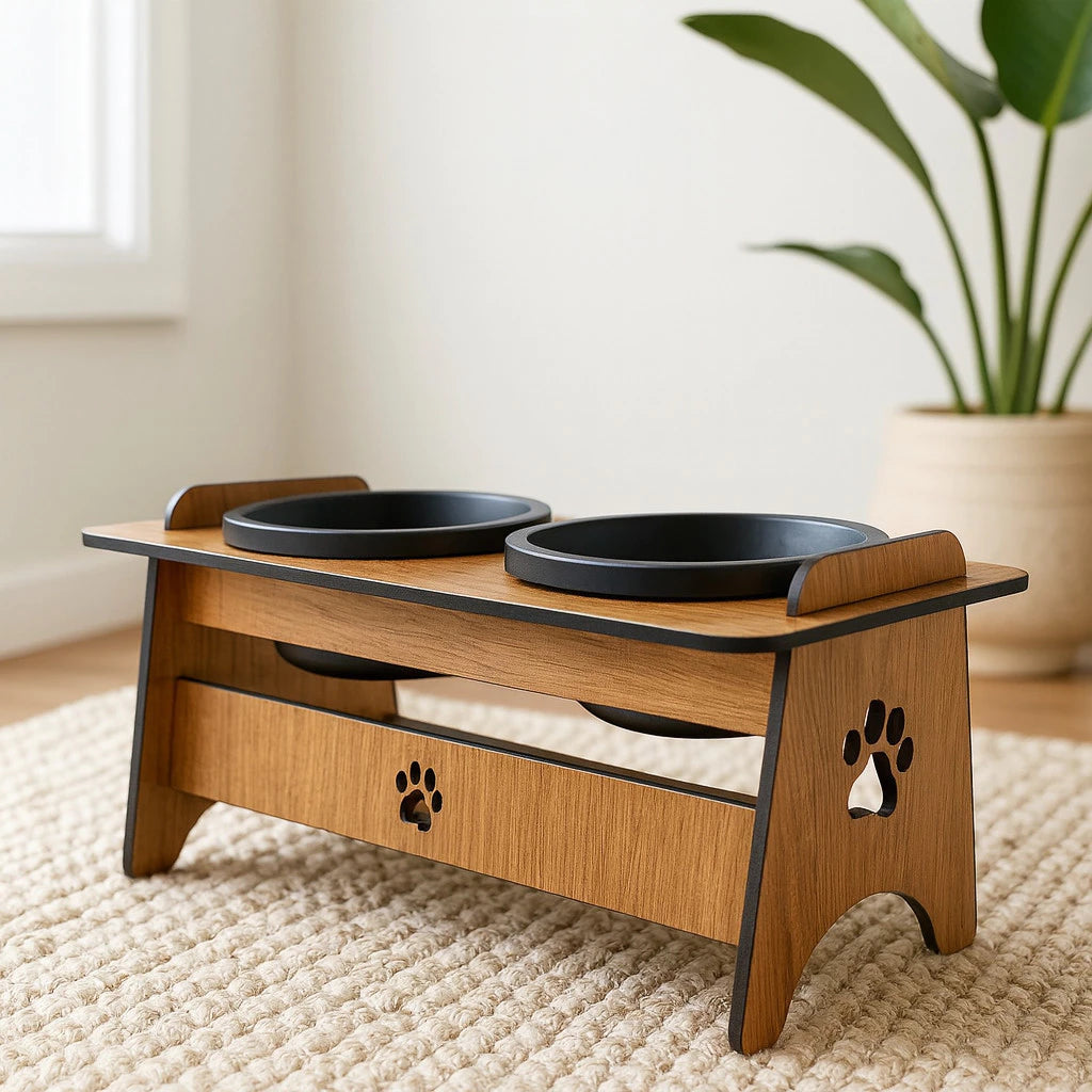 O Comedouro Duplo Elevado em MDF foi desenvolvido para oferecer conforto, praticidade e um toque de elegância ao cantinho do seu pet.