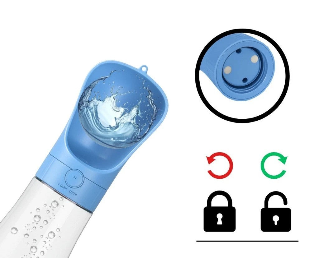 Garrafa de Água com Trava Antivazamento e Compartimento de Ração