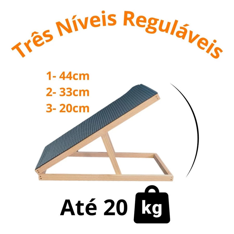 Com estrutura firme em madeira maciça e superfície antiderrapante, ela garante estabilidade e evita escorregões — ideal para pets filhotes, idosos ou com mobilidade reduzida. Além disso, é dobrável e compacta, facilitando o armazenamento e o transporte.