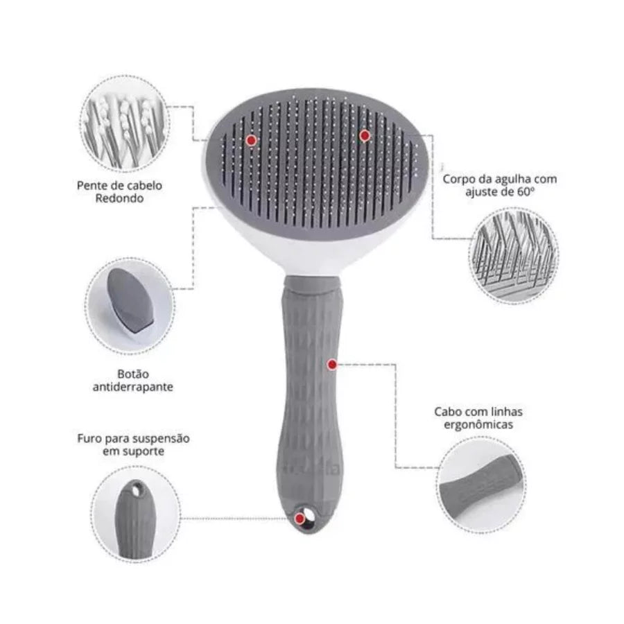 🐾 Escova Rasqueadeira Autolimpante para Cães e Gatos